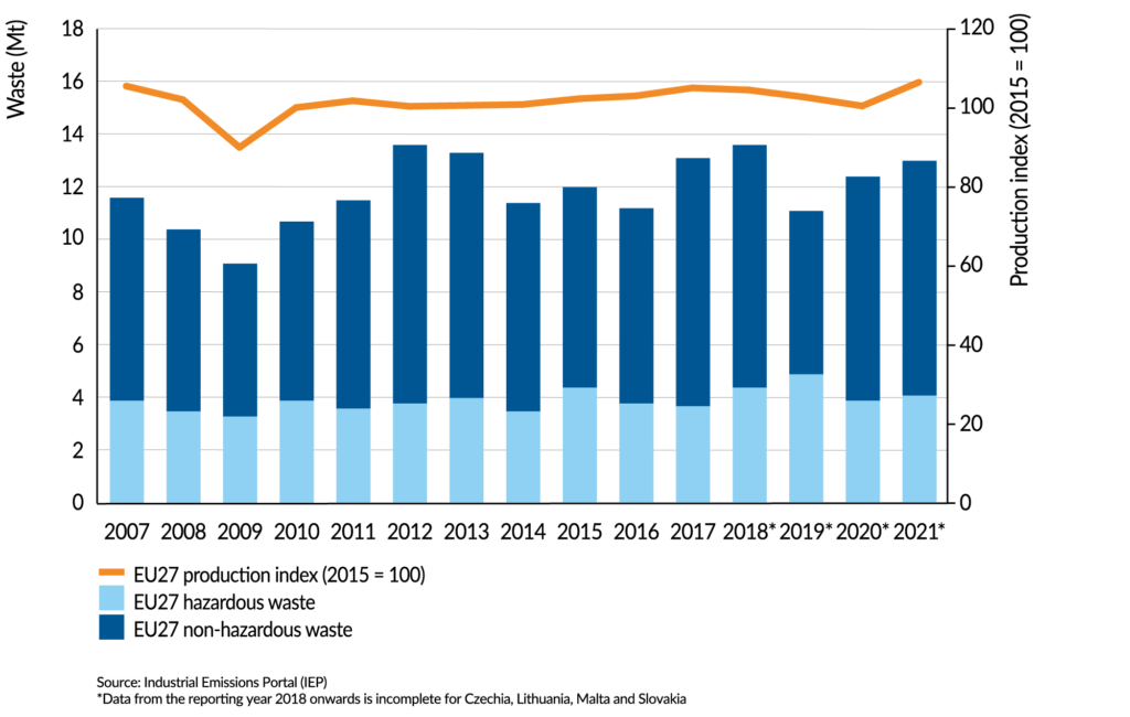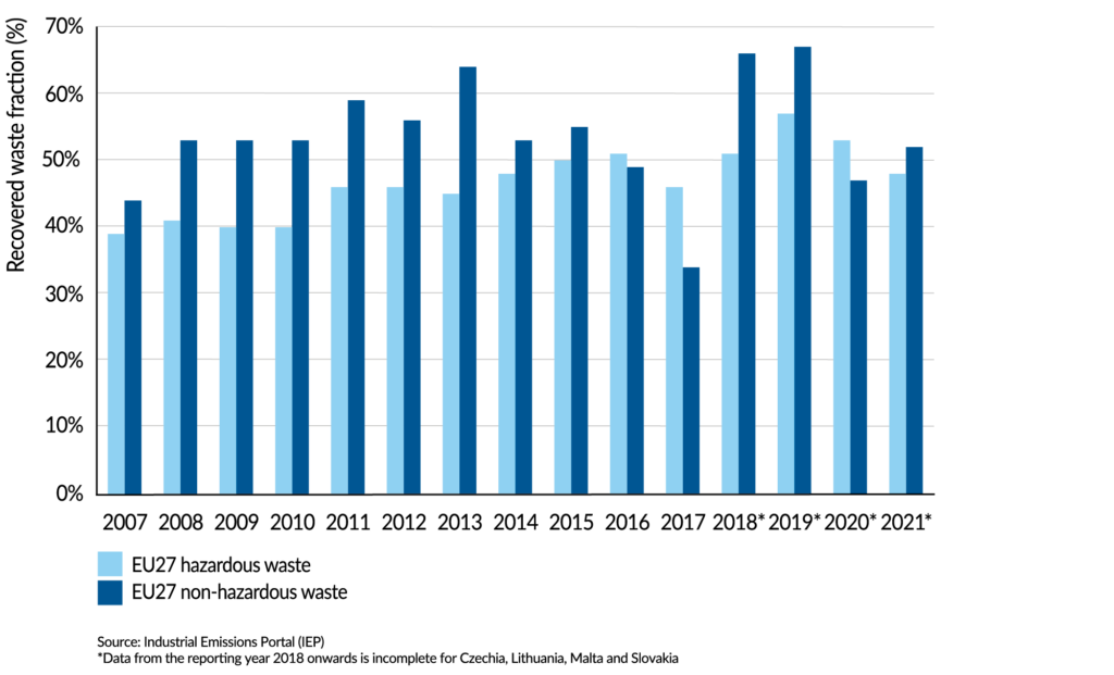 Recovered fraction of (non)-hazardous waste by the EU27 chemical industry