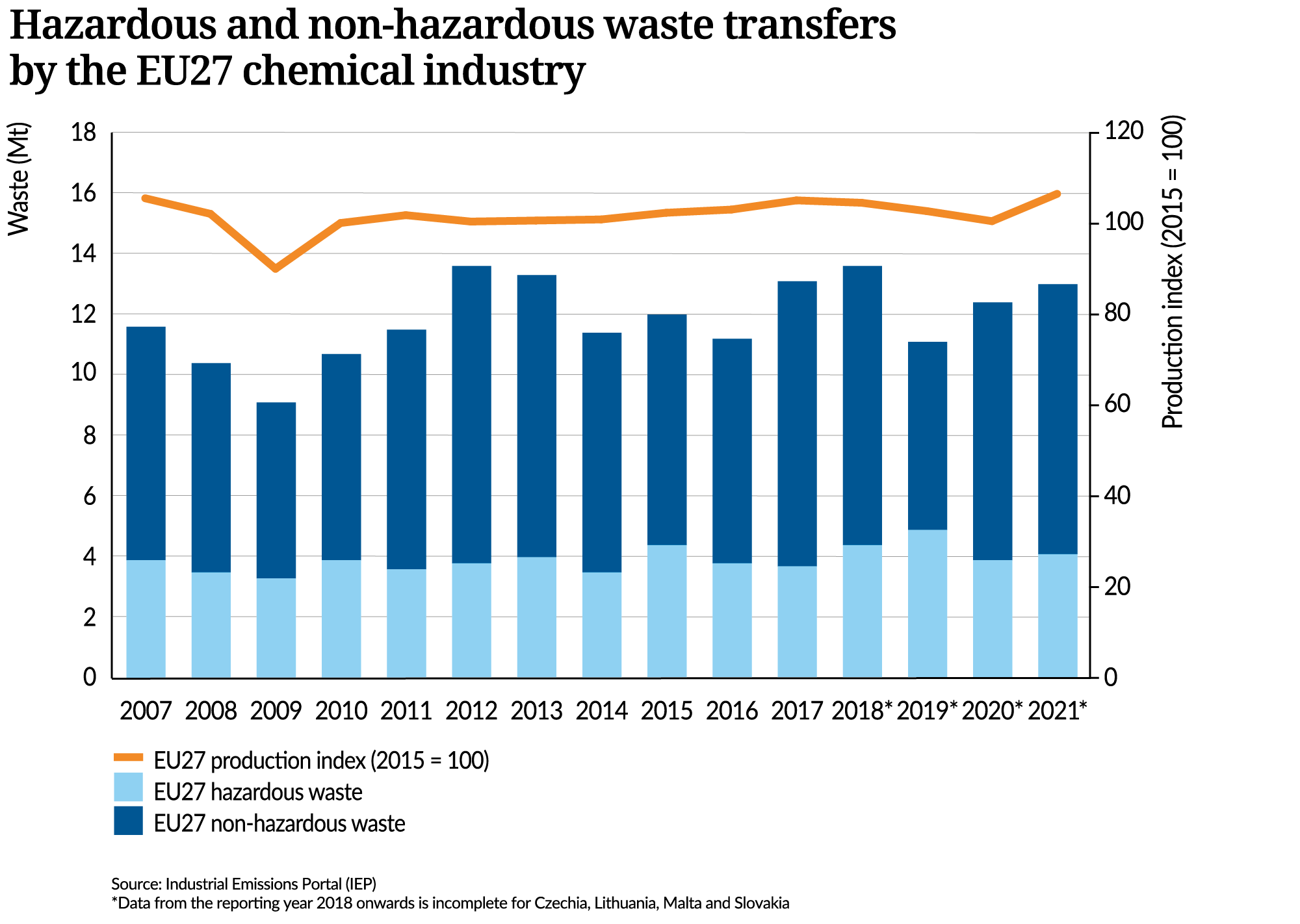 Hazardous and non-hazardous waste tranfers by the EU27 chemical industry