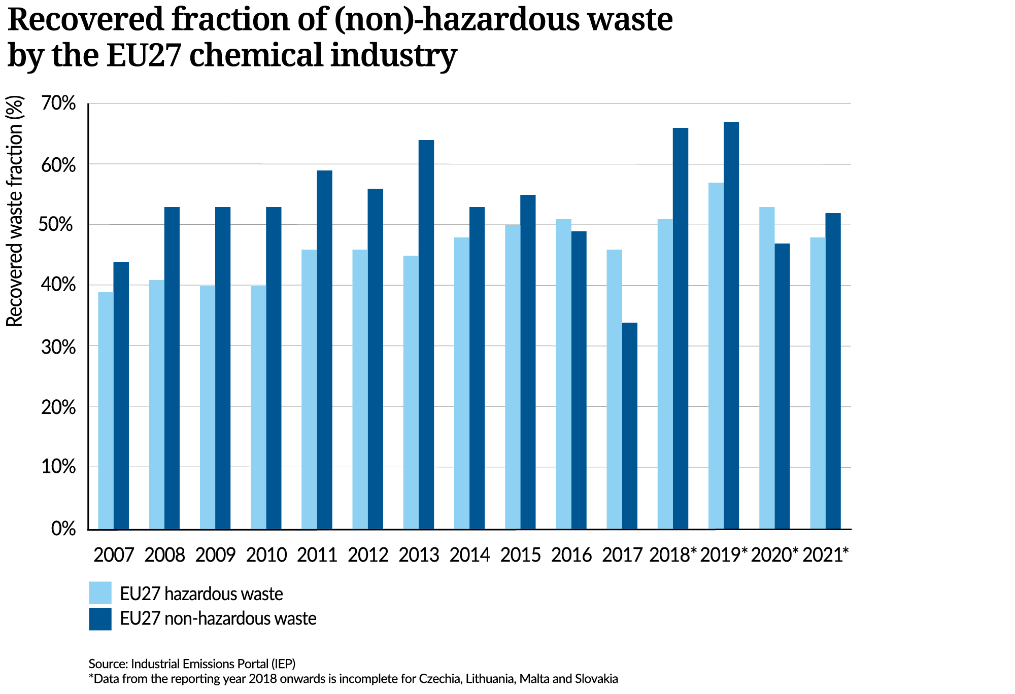 Recovered fraction of (non)-hazardous waste by the EU27 chemical industry