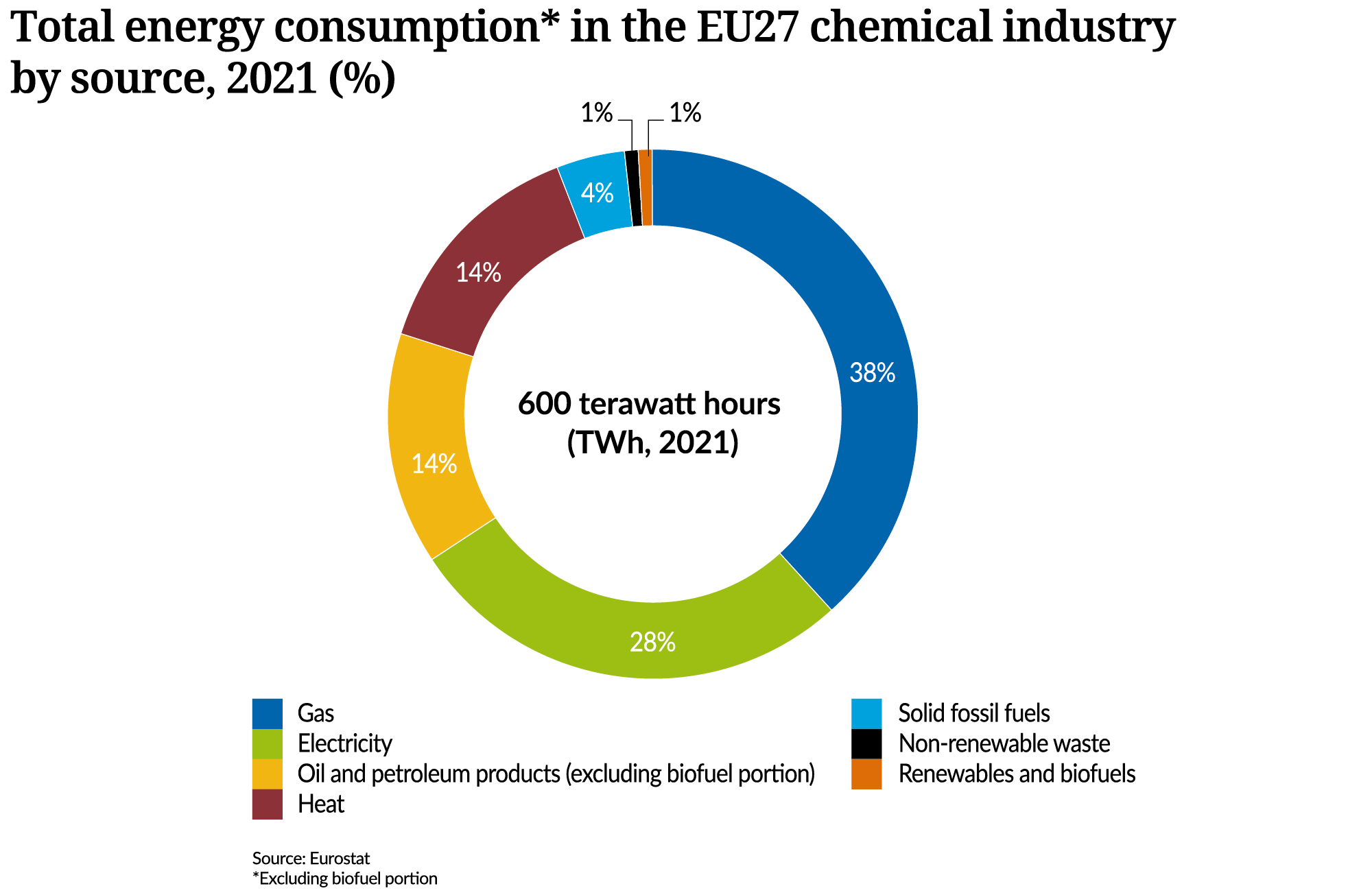 Total energy consumption in the EU27 chemical industry by source, 2021 (%)