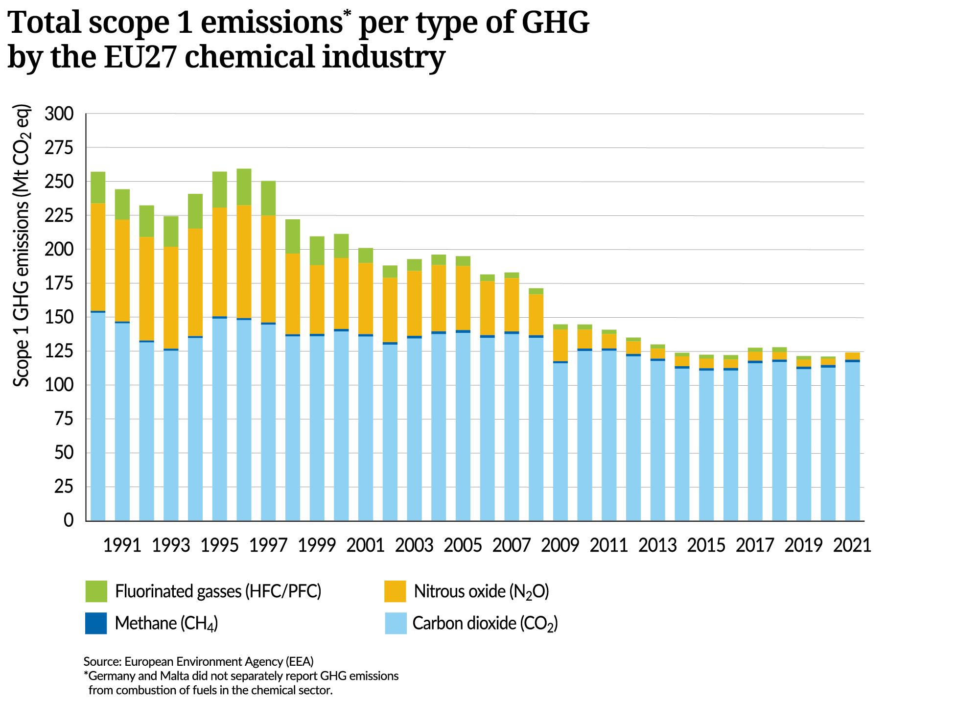Total scope 1 emission per type of GHG by the EU27 chemical industry